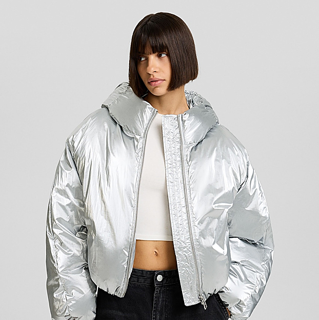 Cazadora acolchada metalizada rebajada de Bershka (19,99 euros).