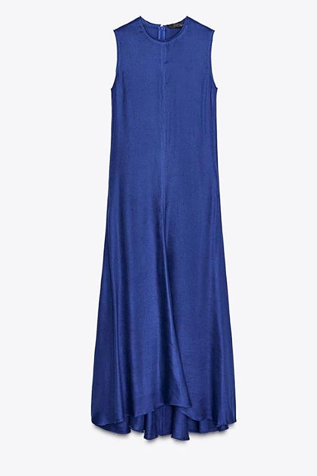 Si buscas un vestido para una ocasión especial, yo elegiría este modelo midi confeccionado en hilatura con mezcla de lino. Tiene el cuello redondo y manga sisa, bolsillos laterales ocultos en costura, bajo asimétrico y cierre en espalda con cremallera oculta en costura. El color, en azul klein, es todo un acierto (69,95 €).