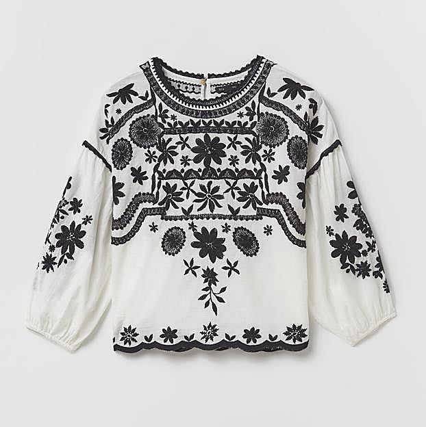 Y lo mejor de todo no es su bonito diseño e incluso el bonito mensaje oculto en ella, sino que se trata de una prenda del low cost que tú misma puedes comparar si te ha gustado. Es un cuerpo de Sfera en color blanco que lleva unos bordados florales a contraste en negro y que tiene un bonito diseño de cuello caja y manga larga abullonada. Está fabricada en algodón 100% y cuesta tan solo 25,99 euros. Un precio de lo más asequible para una prenda muy ponible con la que triunfar seguro en primavera.