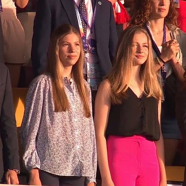 En el palco de honor y junto Luis Rubiales, presidente de la Real Federación Española de Fútbol, las dos hermanas han lucido dos looks informales y muy casual y la princesa Leonor ha confirmado que el rosa fucsia es el color que tienes incluir sí o sí en tu armario este verano.