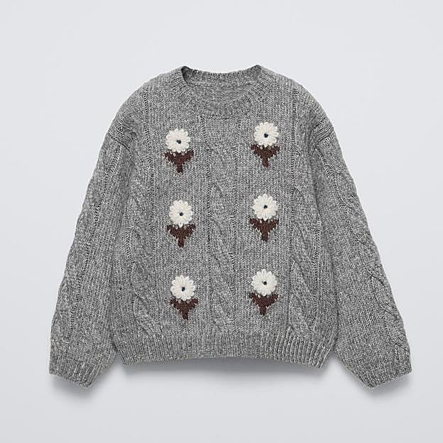 Zara Kids. Con cuello redondo y manga larga y el detalle de flores bordadas (22,95 euros).