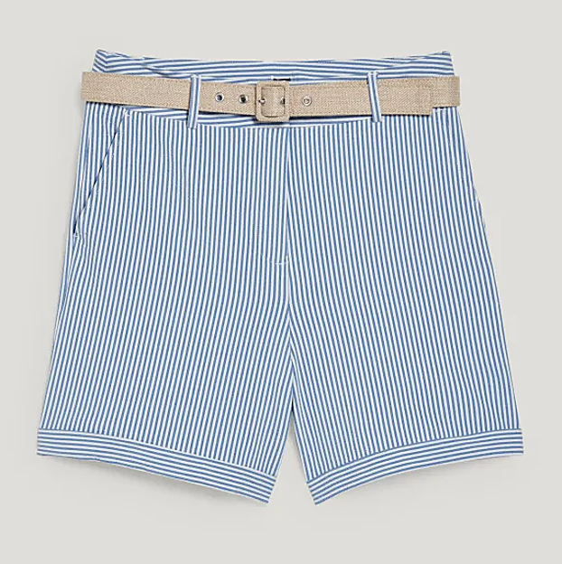 Letizia escogió como protagonista de su outfit a unos pantalones cortos de rayas verticales muy finas en color blanco y azul. Un diseño de talle medio, con vuelta en el bajo y cinturón ancho con hebilla en el mismo tejidos. Ideales, ¿verdad?
