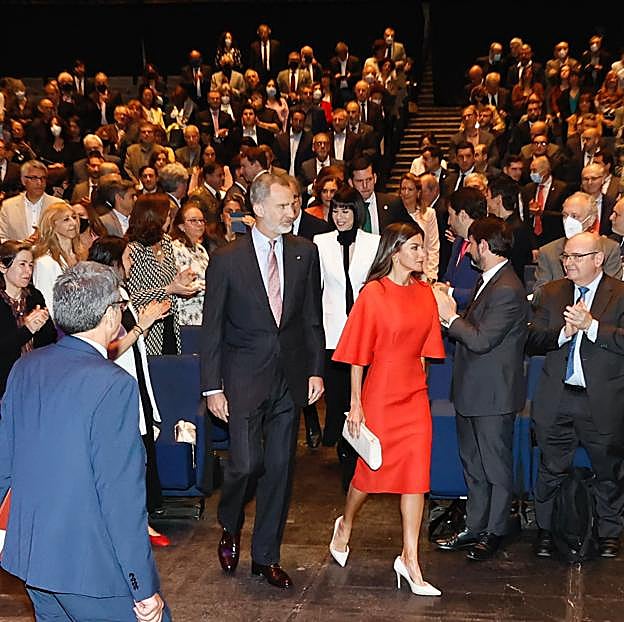 Los reyes han viajado a Barcelona para presidir la entrega de los Premios Nacionales de Investigación 2021 otorgados por el Ministerio de Ciencia e Innovación a los investigadores Francisco José García Vidal, Hermenegildo García Gómez, Montserrat Vilà Planellas, Luis Vega González, María José Alonso Fernández, Jesús Fernando San Miguel Izquierdo, Purificación Muñoz Cánoves, Aníbal Ollero Baturone, Jordi Galí Garreta y Margarita Díaz-Andreu. Para la cita, doña Letizia ha escogido un vestido de Carolina Herrera en color naranja que le sienta como un guante.