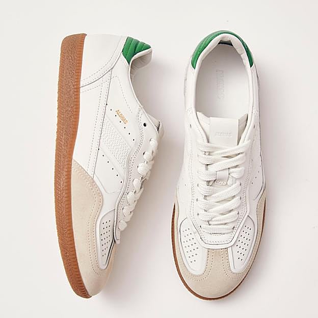 Las zapatillas Tb.490, con adornos de ante en la punta, son un guiño a las zapatillas de atletismo tradicionales. Asentadas sobre una suela de goma rugosa y acabadas con detalles adicionales, como el logotipo estampado y las lengüetas verdes en el talón, que añaden un toque de color a un look de cuero en tonos claros. Precio: 160 euros.