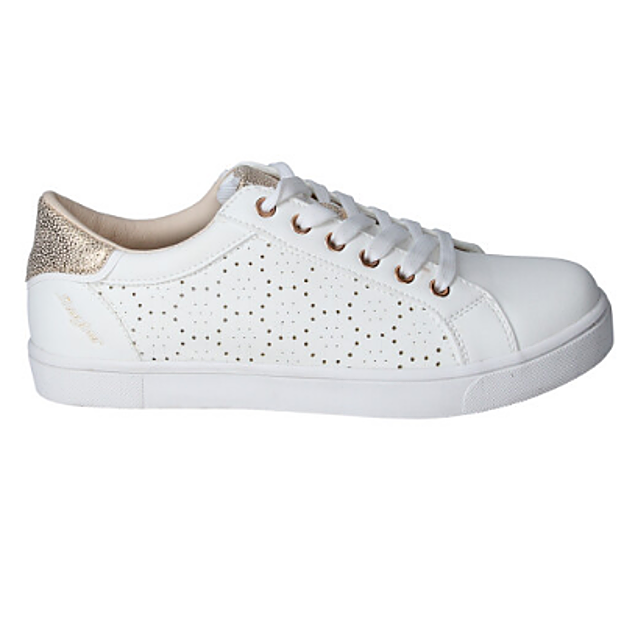Esta es una sneakers casual para mujer en color blanco con detalles metalizados. Su corte transpirable ofrece un gran confort para su día a día y al tener este diseño en color blanco, combina muy bien tanto con looks sport como casual. Precio: 47,95 euros.