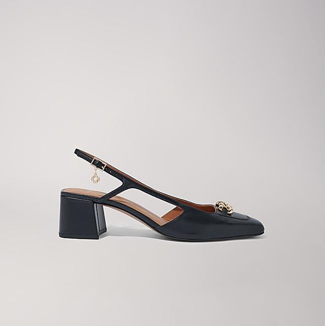 Equipados con un tacón ancho, puntera cuadrada y una fina correa ajustable, estas de Maje dejan ver un charm de Trébol y dejan ver un juego de eslabones en la parte delantera. Precio: rebajados a 147,50 euros.