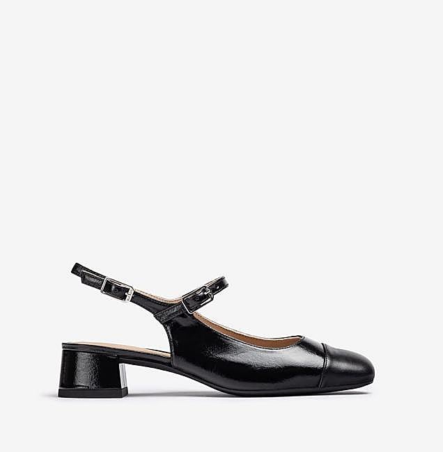 Fabricada en piel de charol con doble pasador, punta cuadrada y tacón medio de 3cm, este modelo es de Monpiel y un icónico de la firma. Precio: rebajadas a 101,90 euros.