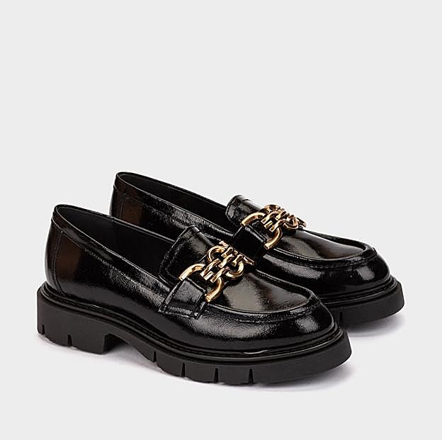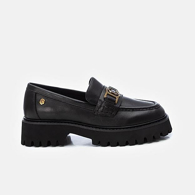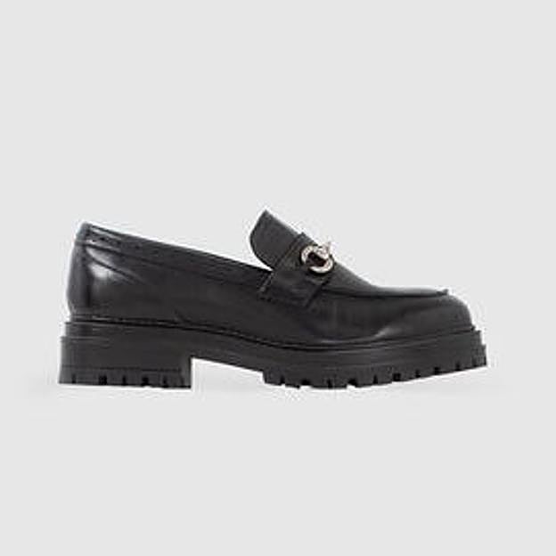 Mocasín con suela dentada y con volumen, adorno de hebilla dorada. Un diseño de tendencia para lucir en tus looks de oficina (140 euros).