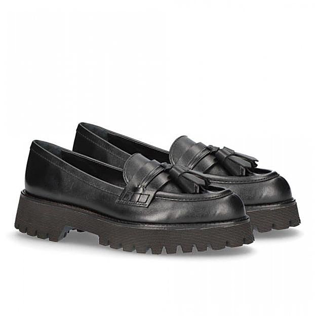 Modelo Jude en napa negra con borlas y suela de goma dentada de 4cm, plantilla y forro de piel (160,30 euros).
