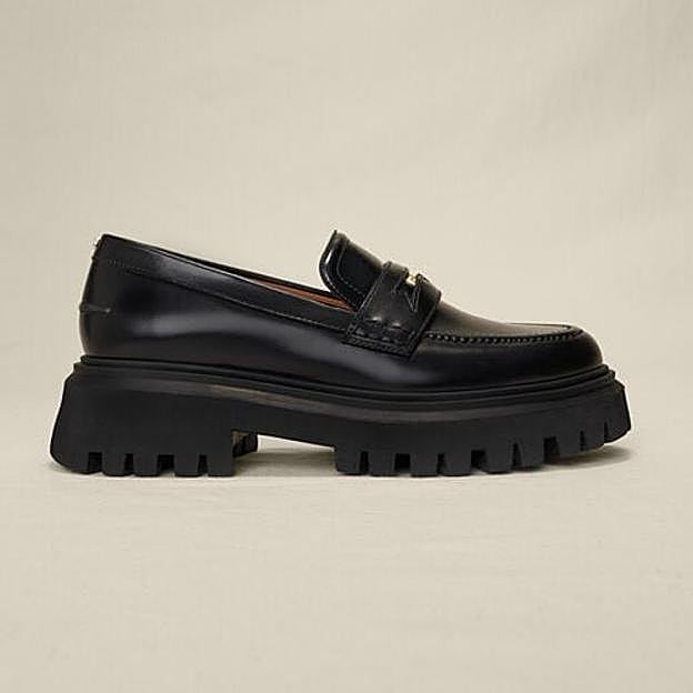 Estos mocasines, desenfadados pero con mucho estilo, están confeccionados en un cuero liso negro muy cómodo. Cuentan con suela de plataforma dentada (335 euros).