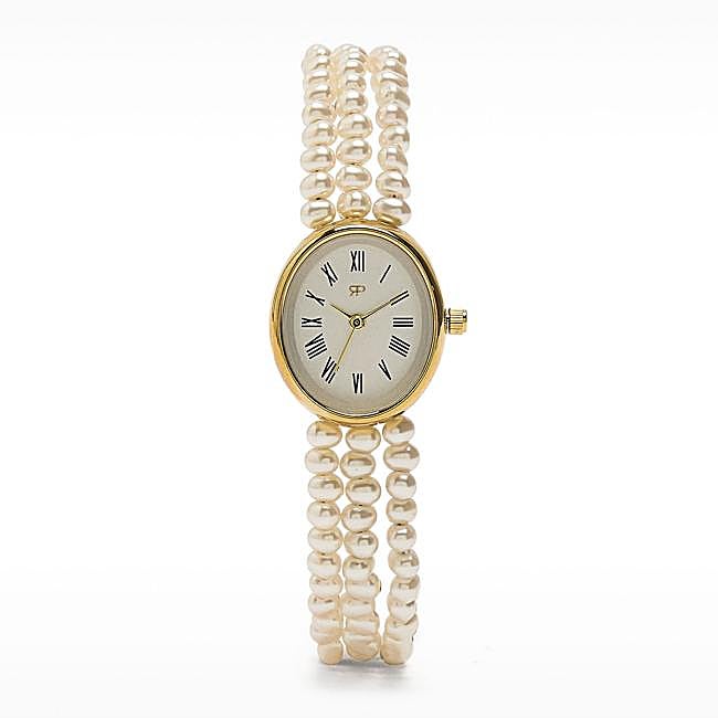 Ficha lo especial que es este reloj con esfera ovalada y pulsera de tres tiras de perlas. Tiene los números romanos, el borde dorado y una estética vintage que marcará la diferencia. Precio: 35,99 euros.