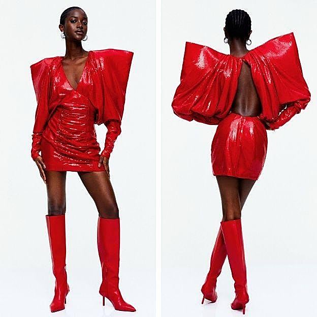 Lo mejor para el final porque si hablamos de glamour y fiesta, no hay nada con un vestidazo rojo y este es el más impresionante de la temporada, solo para verdaderas fashionistas. Hablamos de un vestido con de lentejuelas con mangas largas dramáticas caracterizadas por hombros extra voluminosos rellenos de tul y efecto abullonado que se va ajustado hacia el puño, escote de pico pronunciado, espalda al aire y fruncido en la parte delantera, por un precio de 149 euros. Nos tiene enamoradísimas.
