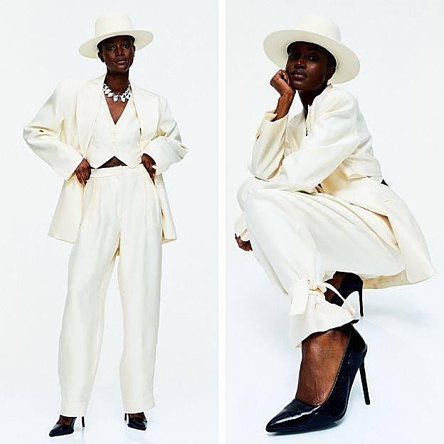 La sofisticación y pulcritud del blanco viene en versión traje de tres piezas, que es el favorito de las famosas, como ya hemos visto lucir a la top Gigi Hadid. Estas prendas de sastrería forman un set de chaleco de vestir con seda orgánica, diseño cropped, escote de pico, cierre de botones y bajo de punto, por 49,99 euros. Blazer con solapas grandes, secciones cut-out en la cintura y espalda, hombreras, fit oversize y cierre de un solo botón, a 149 euros. Y, un pantalón extra amplio de talle alto, con pernera recta, detalles de pinzas y tiras extraíbles en el bajo para anudar, con un precio de 89,99 euros.