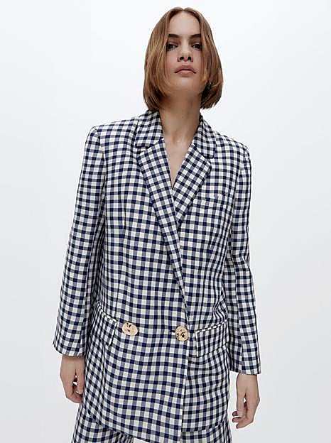 Los cuadros vichy van a seguir siendo un 'must have' en otoño y, ¿qué mejor forma que llevarlos en una blazer? Esta en color blanco y negro es súper ponible, podrás usarlo como chaqueta de entretiempo y solo necesitarás añadira a un look de básicos. Está rebajada 119, 25 euros, en vez de 159 euros.