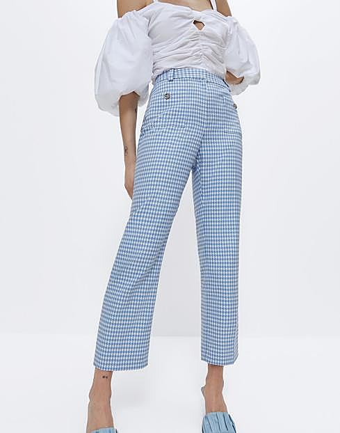 Por último, esta temporada no puede faltar en tu armario unos pantalones estampados y en Uterqüe apuestan por el vichy con este modelo tan favorecedor en color azul. ¡Ideales! Están rebajados a 59,25 euros. en vez de 79 euros.