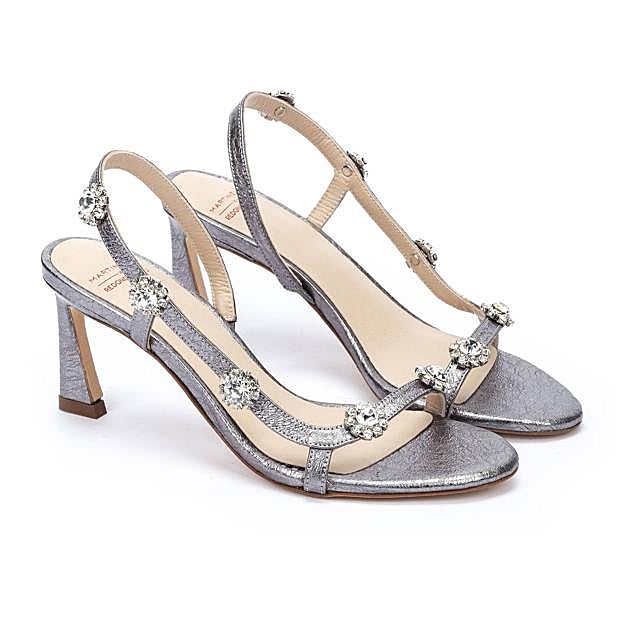 La nueva colección de Martinelli x Redondo Brand, cuenta con un diseño de sandalia muy especial realizado con flores de pedrería hechas a mano. Esta sandalia está elaborada en piel laminada craquelada de color plata. Precio: rebajadas a 242,95 euros.