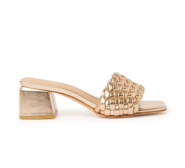 Los zapatos que eligió Verónica para completar su estilismo con vestido bohemio también son de Alma en Pena. Son unas sandalias de tacón con tira trenzada en color dorado. Cuentan con una plantilla acolchada para que puedas estar cómoda y sin dolor de pies. La altura del tacón es de 4 cm y tiene un precio de 65 euros.