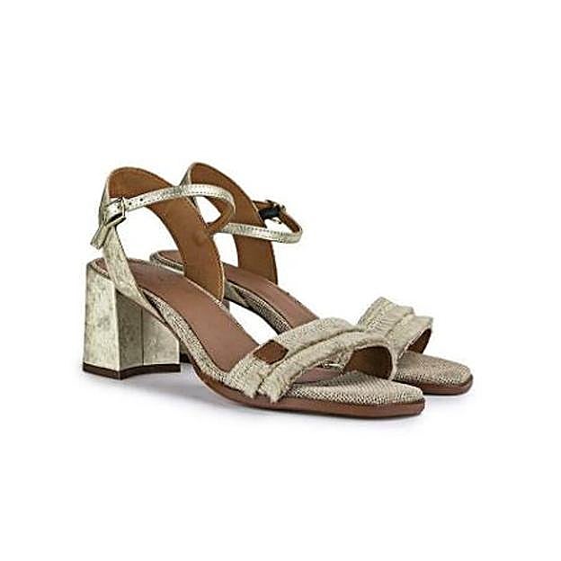 Sara escogió un diseño en piel sauvage color beige y laminado platino que lleva la tira delantera con flecos al tono. Además, tiene pulsera con hebilla que consiguen una sujeción perfecta en el tobillo y haciendo que su tacón de 7 centímetros sea muchísimo más cómodo. Nos encantan no solo por su bonito y cómodo diseño que también está disponible en color negro para las que prefieren algo más oscuro.