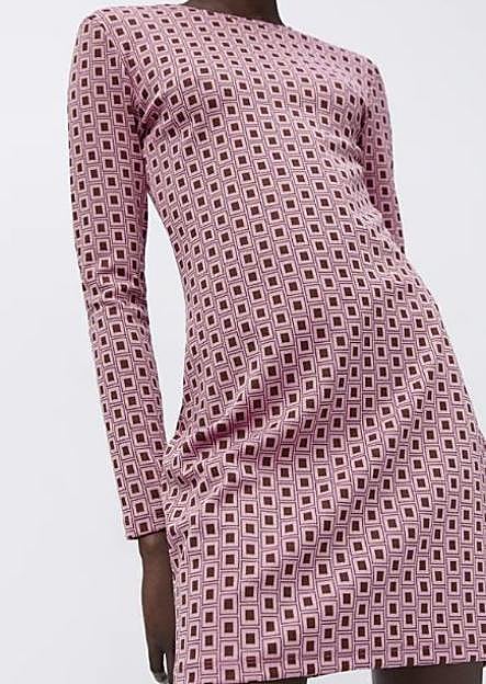 Se trata de un vestido mini de manga larga y corte recto, que lleva el cuello redondo y un estampado jacquard sobre un fondo rosa claro. Un diseño sencillo que cuesta tan solo 19,95 euros y que ahora mismo está agotadísimo en la página web de la firma. La talla S, M y L que Zara ha lanzado de esta prenda están desaparecidas y con lista de espera. Y no nos extraña porque es monísimo.