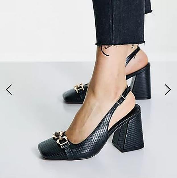 Son prácticamente iguales, se diferencian en el material que imita la piel de serpiente, que son en color negro y que cuestan muchísimo menos: 31,99 euros. ¡No está nada mal! Es probable que tengan el tacón ligeramente más alto, pero mantienen el diseño ancho que hacen que sea un calzado muy cómodo. Además, están disponibles en plateado y en 'animal print'. ¿Te atreves con ellos?