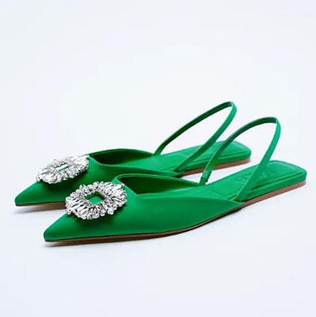 «Días de trabajo mejores con zapatos bonitos», escribió Tamara junto a una fotografía en la que aparecía luciendo uno de los zapatos que más éxito están teniendo de la nueva colección de Zara. Se trata de un modelo tipo mule con sujeción con tira en el talón y que lleva el escote del empeine cuadrado y la punta triangular muy pronunciada. Un zapato plano que Tamara escogió en color verde y que ha gustado muchísimo por su broche joya XL que lleva en la parte delantera.