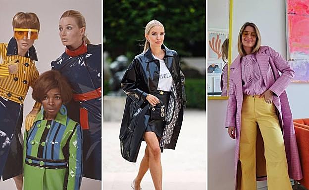 Del elegante uso del cuero, tan minimal, sexy y misterioso, hasta las nuevas creaciones con materiales artificiales que salían de las mentes vanguardistas de los jóvenes modistos. Plásticos, sintéticos como el vinilo o el nailon... En prendas exteriores como gabardinas y chubasqueros o en pantalones y botas, coloridos o en tonos oscuros. Estos tejidos fueron el último grito entonces y para este otoño-invierno.