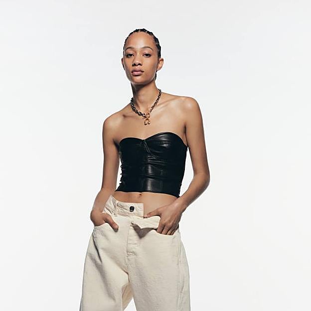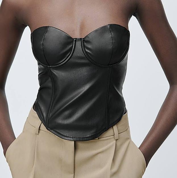 Aunque, todo apunta a que la mejor apuesta son los bustiers y corsés, según dictan la pasarela, las novedades de marcas low cost y los outfits de famosas e influencers. Estos sensuales tops pueden llevarse para modernizar y rejuvenecer el aspecto o para favorecer la silueta, haciéndola más esbelta. Eso sí, no todo tiene que ser enseñar y pueden lucirse de manera discreta, para día o noche, incorporando una camisa debajo. Para comprobar lo bien que sienta, el que vas a llevar será esta prenda corsetera efecto piel que es viral en Instagram y puedes encontrar en Zara a precio asequible.