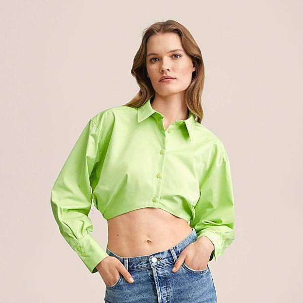 Para conseguirlo necesitas esta camisa cropped en tejido de algodón, con cuello solapa, manga larga con hombros caídos, detalles fruncidos y cierre de botones, a un precio de 29,99 euros.