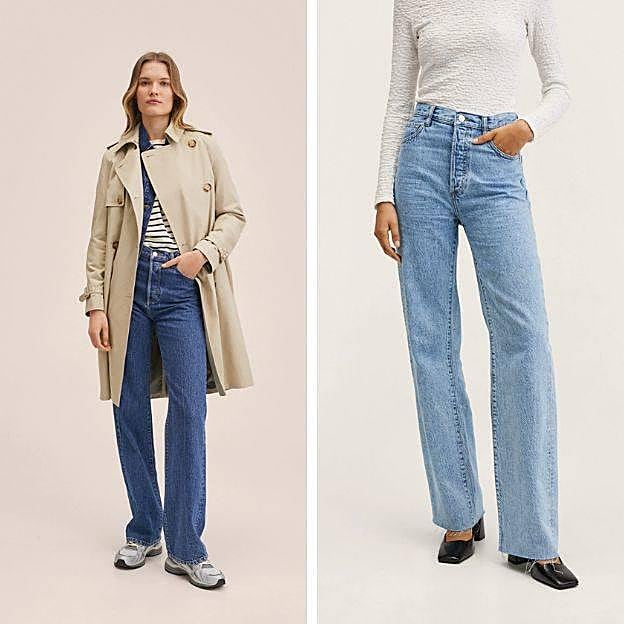 Para contrarrestar lo corto del top, conjunta unos comodísimos vaqueros tipo wide leg con talle alto, en azul medio, como estos con bajo desflecado, por el mismo precio que la anterior prenda, 29,99 euros.