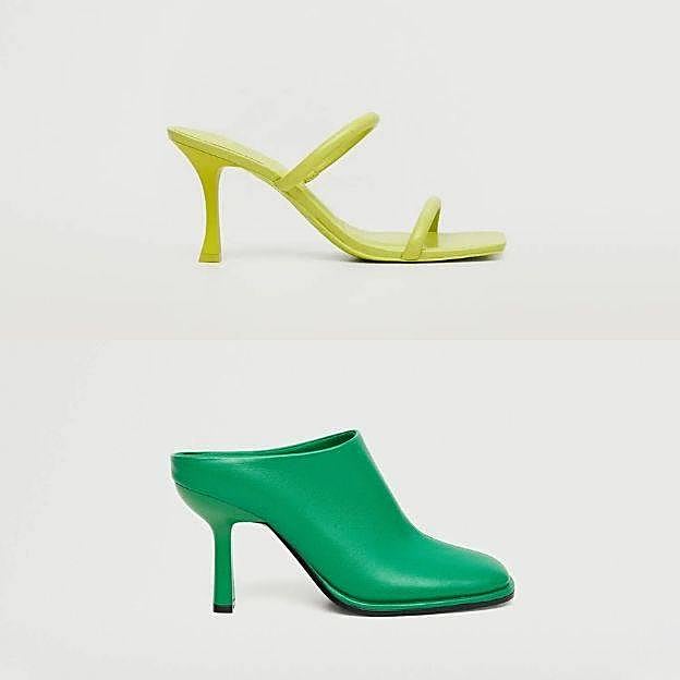 Para los accesorios, Mathilde apuesta por piezas de aspecto lujoso como un bolso de mano pequeño en color crema y unos salones de tacón con broche de pedrería, tipo Manolo Blahnik, en lima. Aunque, en Mango también puedes encontrar modelos que le van fenomenal al outfit y están muy de moda. Por ejemplo, estas sandalias destalonadas de tacón bajo con tiras, en verde lima, a 39,99 euros. O, estos zapatos de piel con diseño mule, punta cuadrada y tacón trompeta, en verde medio, por 69,99 euros.