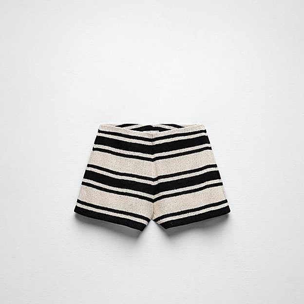 Hablamos de unos shorts super similares a los anteriores, con el mismo diseño, tejido y cualidades, solo que la pernera se ve más holgada y el estampado a rayas es diferente, siendo el de este modelo el clásico de rayas finas horizontales. También lo puedes encontrar con un coste de 15,95 euros y en las tallas S, M y L, todas disponibles para su compra online.