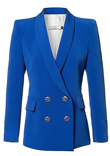 Se trata de un look de Bleis Madrid, una marca española que nace del deseo personal por recuperar la calidad de la sastrería femenina acabada a mano, con especial atención en cada detalle para reinventarla y hacerla única. Ana lleva en concreto un diseño cruzado y fabricado en crepe en color azul oscuro que tiene doble abotonadura y cuello smoking.