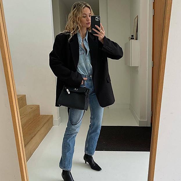 Este outfit es fácil, rápido y favorecedor, para no marearnos la cabeza con combinaciones. Además, puede llevarse de varias formas, siempre que empleemos el tejido vaquero en la parte superior e inferior, por ejemplo, con un conjunto de falda midi y chaqueta o con unos jeans 'boot cut' y una camisa denim. Si quieres un estilismo de oficina que siempre luzca diferente empleando las mismas prendas, pero te falta inspiración, esta influencer nos da ideas sobre cómo vestir el 'total look denim' combinando diferentes accesorios y abrigos.