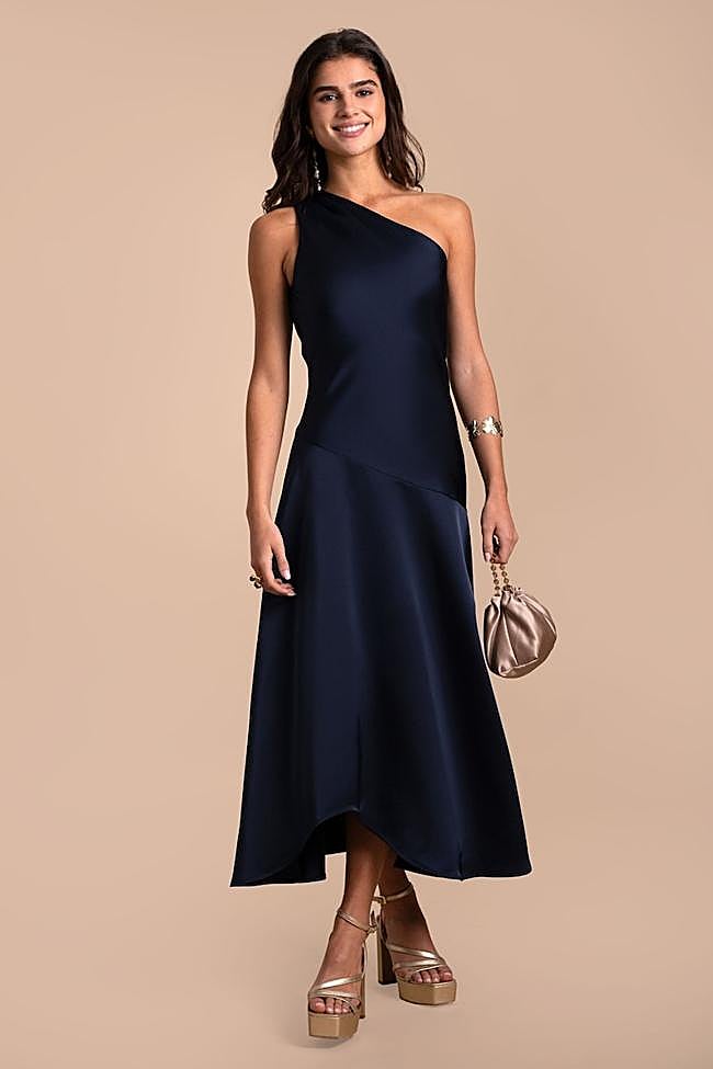 Leyendas urbanas a parte, existen otros colores no bien vistos. Es el caso del negro. Este tono cada vez más aceptado no es el preferido para este tipo de citas a pesar de ser con el que muchas se sienten muy cómodas y uno de los más elegantes. Si es tu caso, tranquila, hay una solución: el azul marino. Este color es perfecto para las bodas de tarde y de noche y es el truco para ser la invitada mejor vestida.