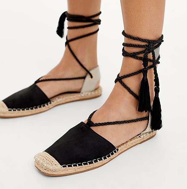 Una vez te hayas hecho con el vestido, te dejamos la mejor opción para combinarlo: un calzado plano y cómodo. Y, ¿cuál ha elegido Carmen? Unas alpargatas planas. En concreto, un modelo de Parfois en color negro con cuerdas de atar en el tobillo que están rebajadas a 19,99 euros. ¡Puntazo!