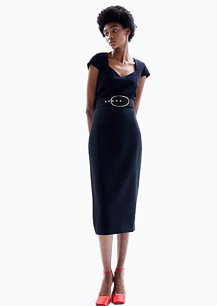 Si todavía no tienes ninguno en el armario y quieres probar el efecto favorecedor de esta prenda como Victoria, atenta a este tan bonito que acaba de llegar a Sfera. Se trata de un bonito diseño de largo midi y corte de tubo que lleva la falda y el cuerpo ajustado. Tiene un favorecedor escote corazón que va acompañado de una manga corta también ajustada al hombro.