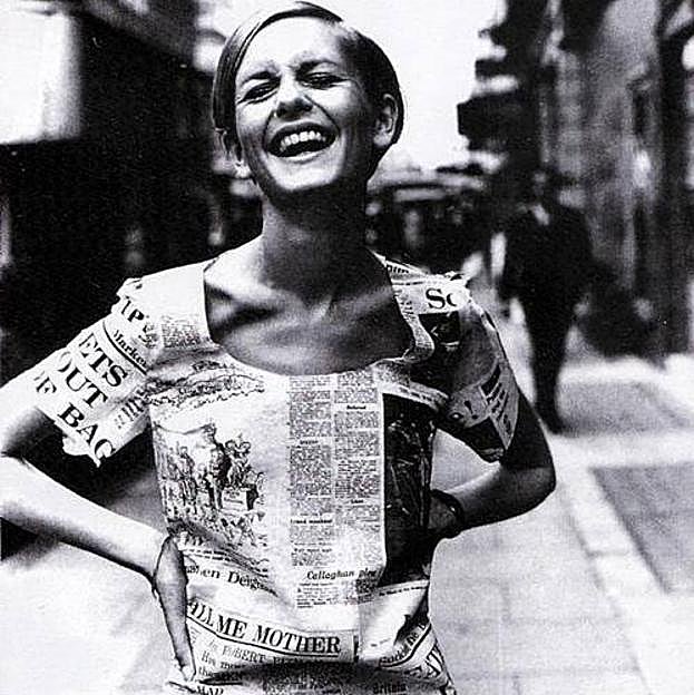 Lo cierto es que esta no fue la primera aparición del vestido y ni siquiera es original de la firma de lujo francesa (el ego del creativo británico lo llevó a elaborarlo con una selección de artículos que hablaban de él). En 1935, Elsa Schiaparelli, la modista más vanguardista de todos los tiempos, lo creo directamente con recortes de papel de periódico. Después, en los años 60, el print se hizo muy popular y entre cuyas imágenes más representativas estaba la de Twiggy, en el Londres de 1967. Versace y Diane Von Fürstenberg lo recuperaron a posteriori.
