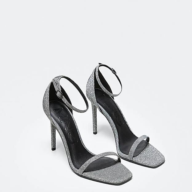Para combinarlo, es muy facil ya que puedes optar por diferentes estilos de calzado. Desde sandalias en color negro, plateado o para las más arriesgadas un toque de glitter. Esta última propuesta es también por la que apuesta Mango con unas sandalias de vértigo por 29,99 euros.