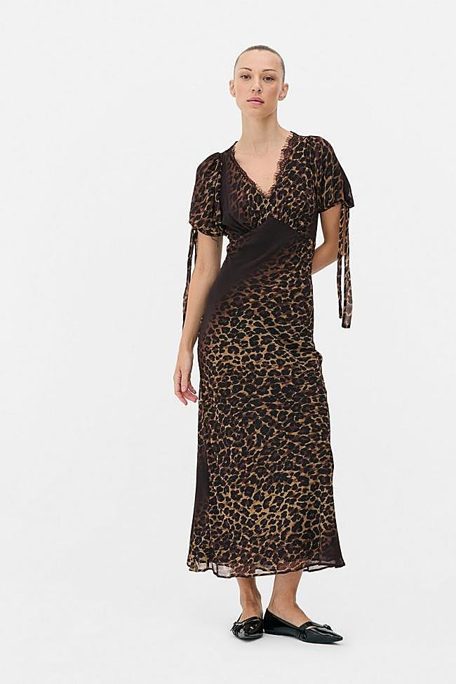 La tercera propuesta confirma que el estampado de leopardo ha vuelto un año más. Cada temporada de otoño e invierno el animal print se coloca como una opción perfecta para formar looks, y este 2025 viene pisando más fuerte que nunca. Ejemplo de ello es este vestido que hemos seleccionado y que forma parte de la colección de Rita Ora para Primark.