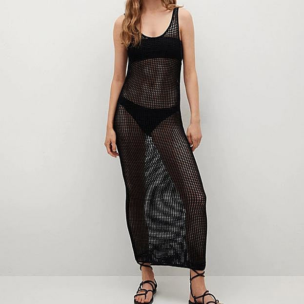 El vestido negro es ideal para los días de playa, pero en verano nunca hay un mal momento para una propuesta tan espectacular. En tejido de punto calado fino y diseño recto largo, tiene el escote redondo.
