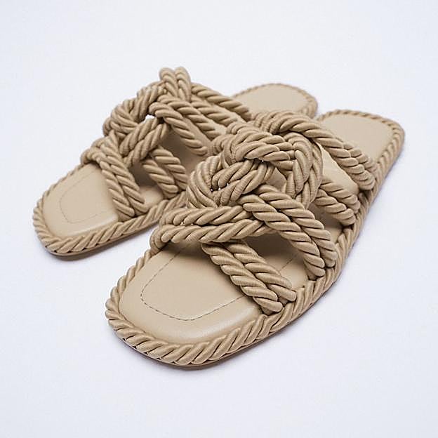 Vicky combinó el suyo con unas sandalias de cuerdas de Zara. En concreto es uno de los modelo plano tipo mule más vendidos de la firma de esta temporada, que lleva las cuerdas entrelazadas en forma de nudo y que costaban 35,95 euros. Y hablamos en pasado porque están agotadísimas en sus dos colores disponibles: el camel y el crudo.