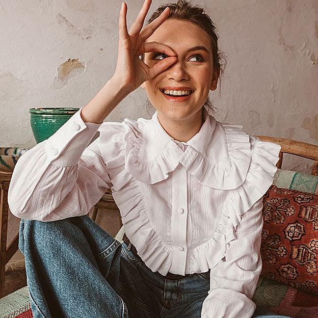 La influencer enseñó a sus seguidores que se había enamorado de un modelo de Vogana, una firma de moda española dedicada al diseño de prendas para mujeres con personalidad y seguras de sí misma. Se trata de una blusa confeccionada en popelín con el cuello rematado por un volante, que lleva la manga larga y el puño ancho y el detalle de un volante en la parte del escote. Ideal, ¿verdad?