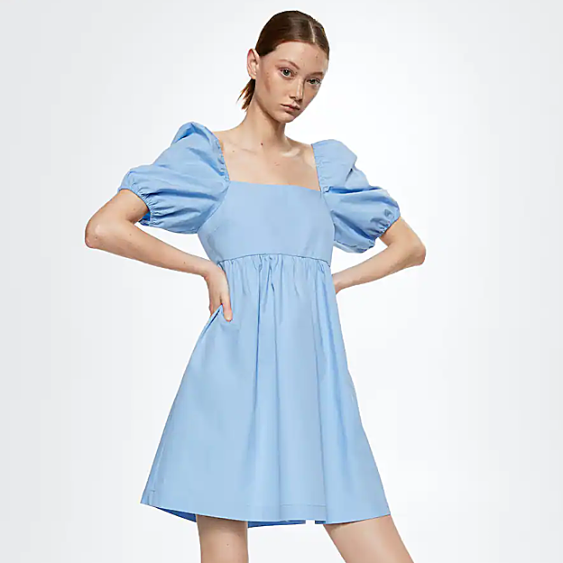 Por otro lado, tiene el color azul claro, el corte a la cintura, las magas abullonadas, el escote recto y la falda de evasé. ¡Se parece muchísimo! Y lo mejor de todo es que cuesta tan solo 29,99 euros. Está disponible también en color salmón y, como ha demostrado Virginia, queda de maravilla con sandalias planas.
