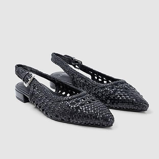Estas bailarinas de piel negra son de Ikks combinan la forma chic del slingback con la firma bohemia del trenzado estilo macramé. Precio: 145 euros.
