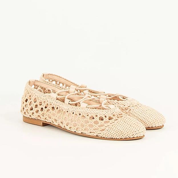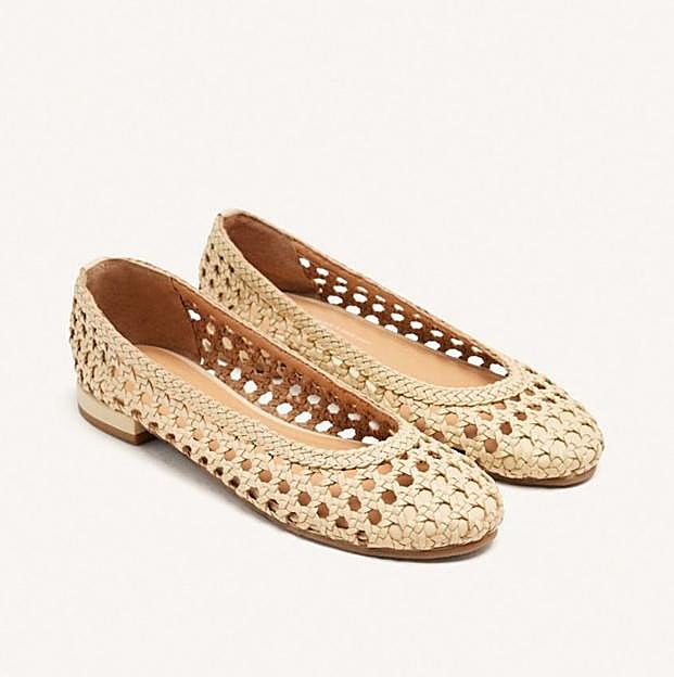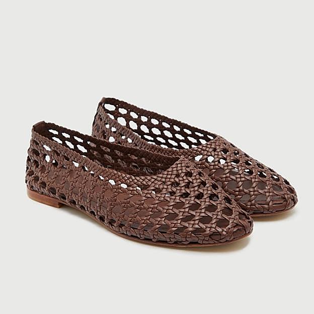 Elegantes bailarinas marrones de Augusta. Trenzadas a mano, ofrecen una sensación transpirable y aireada, perfecta para los días más cálidos. Precio: 305 euros.