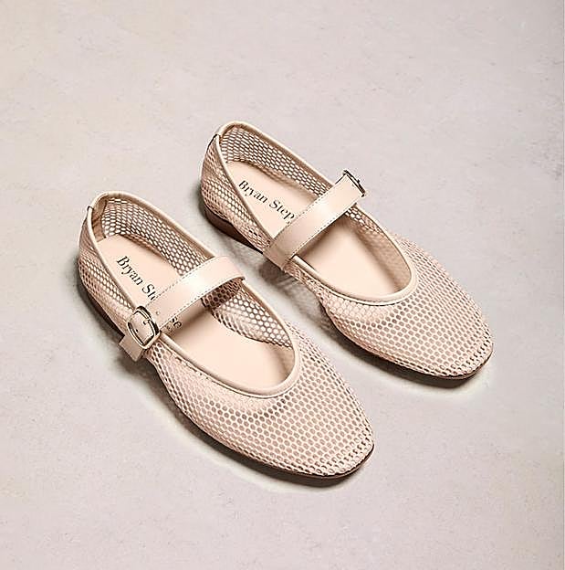 Bailarinas de rejilla resistente con hebilla de Bryan Stepwise. Tiene un cierre ajustable, punta redondeada y plantilla forrada en piel. Precio: 79,90 euros.