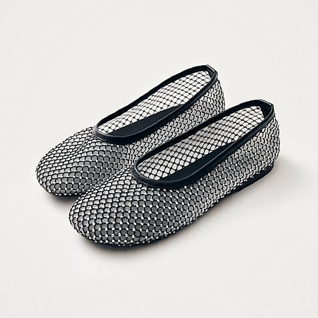 Las bailarinas Lorain de Alohas están diseñadas con una cautivadora mezcla de materiales con una superposición de malla negra, adornada con brillantes. Precio: 180 euros.