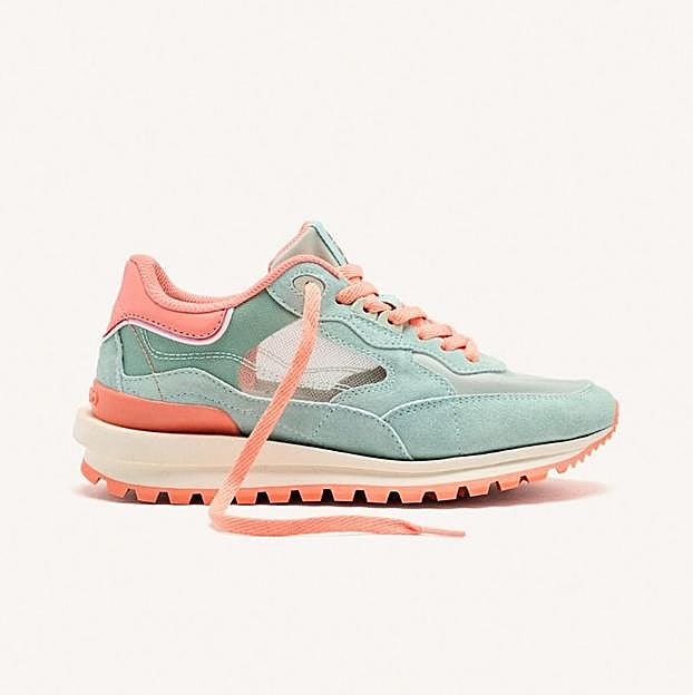 Zapatillas de color coral con materiales combinados y suella marrón (120 euros).