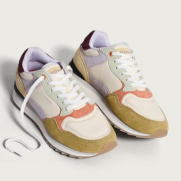 Destacan por su combinación única de colores en tonos crema, caqui, lila pastel, con detalles en terracota y verde aguamarina. Esta mezcla original y armoniosa de colores las hace resaltar en cualquier situación. Tienen una suela que proporciona comodidad y tracción, mientras que la plantilla de Memory Foam (R) asegura una pisada suave y cómoda durante todo el día. Precio: 110 euros.