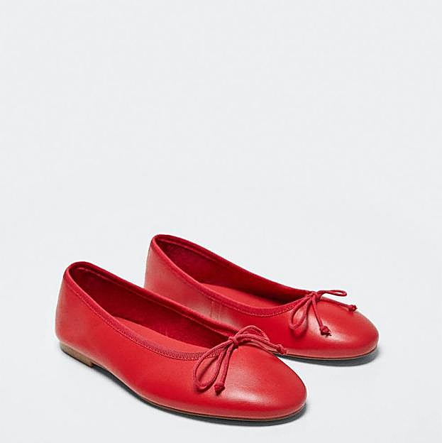 Seguimos con otro clásicos femenino, cómodo e imprescindible en el zapatero. El favorito de las francesas. Sí, hablamos de unas bailarinas planas en tejido de piel. Se trata de un diseño con puntera redonda y detalle de lazo a tono como decoración. Las puedes encontrar en cuatro colores: negro, marrón, rojo y verde pastel. Su coste es de 29,99 euros, con tallas que van de la 35 a la 42.